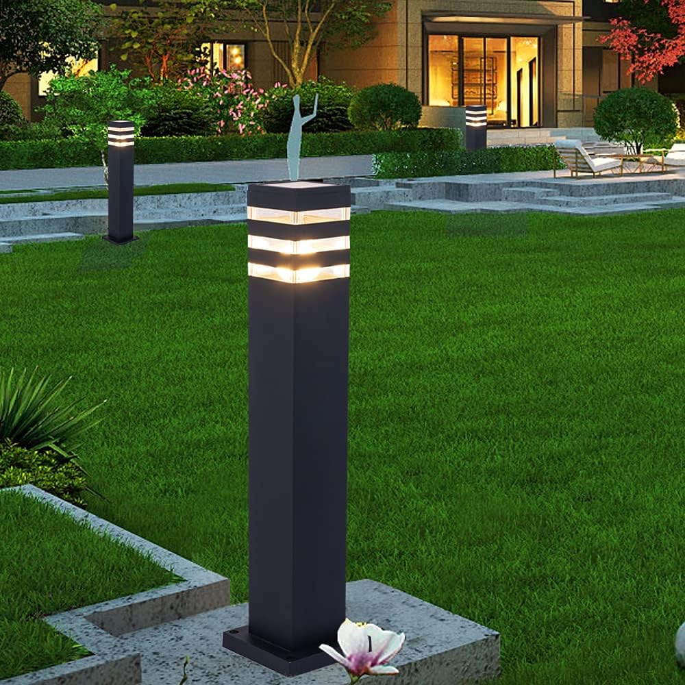 Lampe borne pilier noir avec ampoule E27 6000 ou 3000K [...]