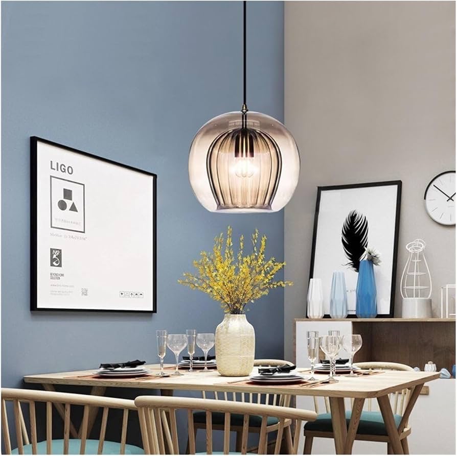 Suspension citrouille avec ampoule e27 en verre amber 85-265V Dimension [...]