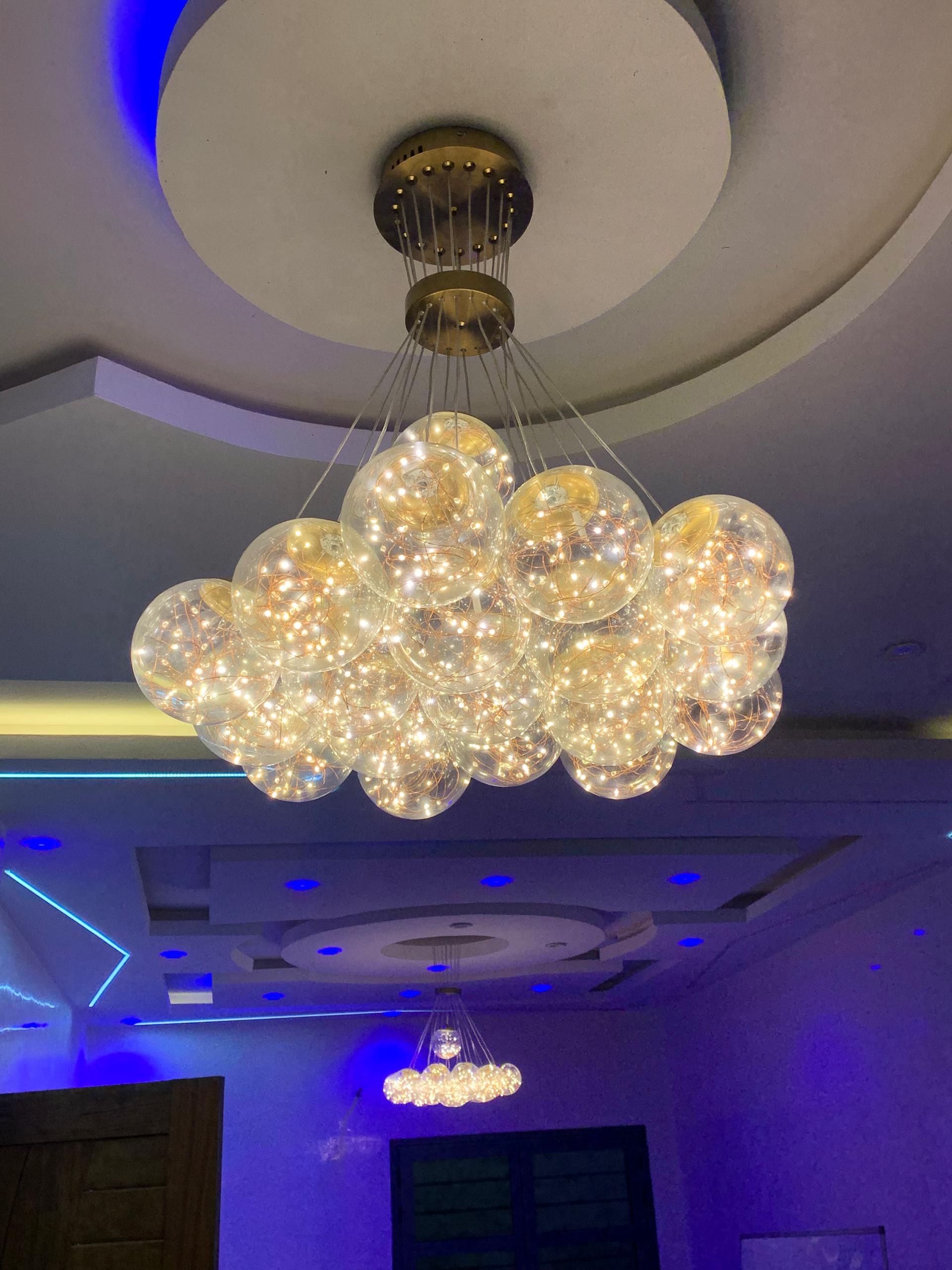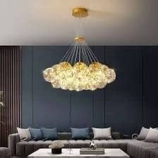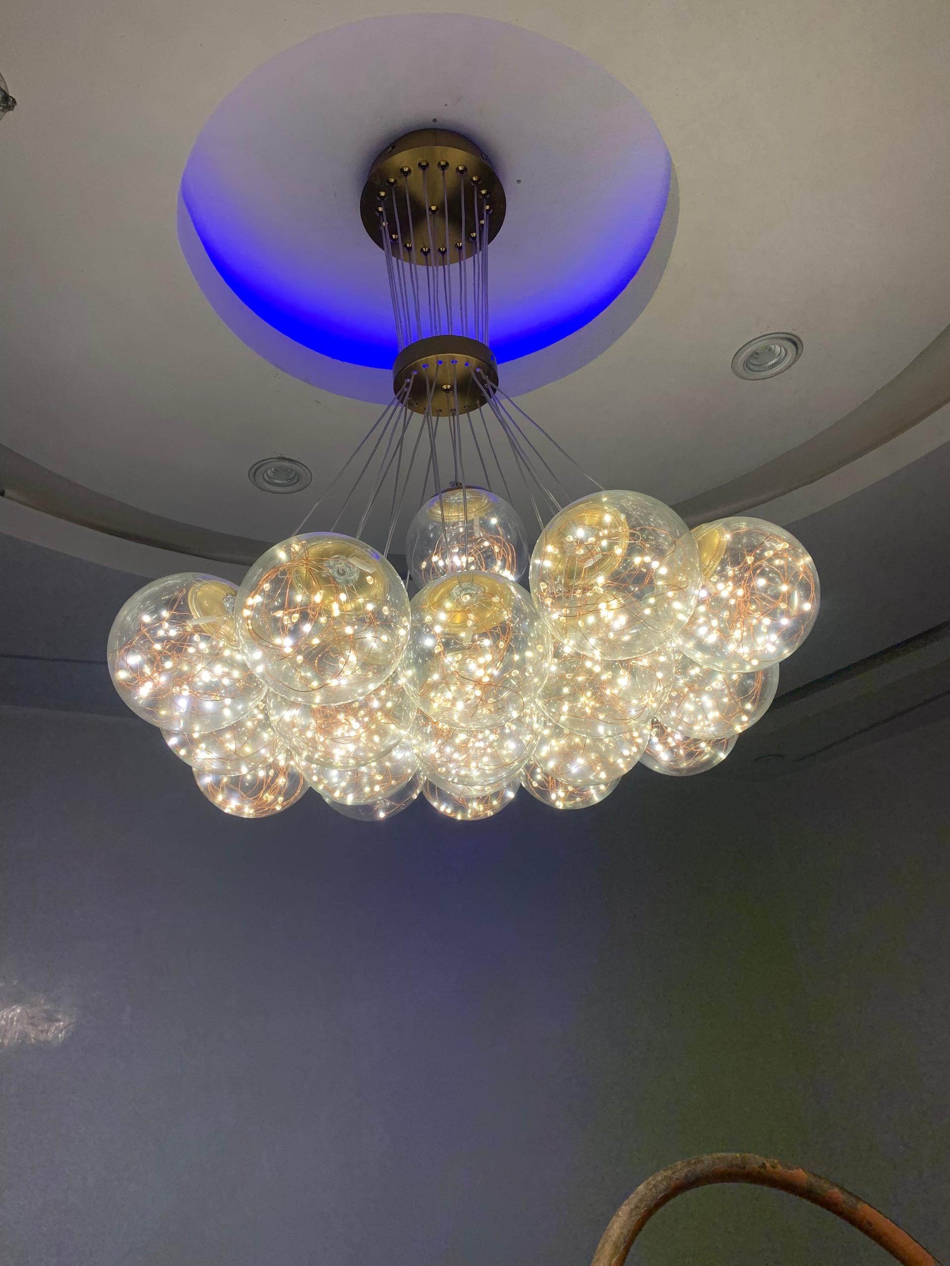 Lustre panier boule doré avec led. 19 boules 85-265V dimension 60×80 à 3 lumières