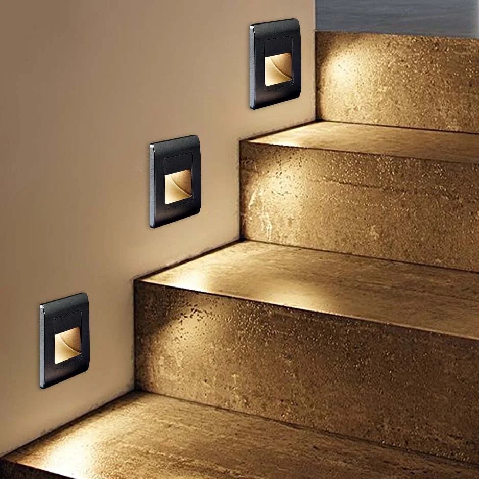 SPOT ESCALIER CARRE NOIR LUMIERE BLANCHE