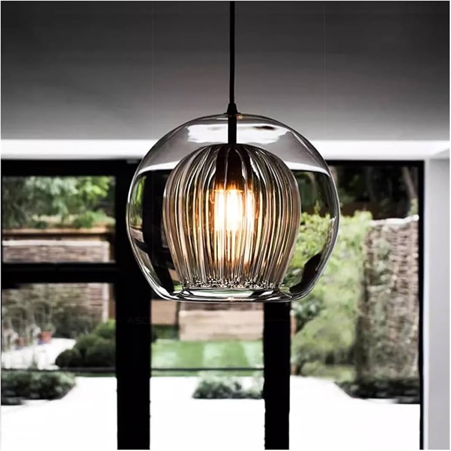 Suspension citrouille avec ampoule e27 en verre amber