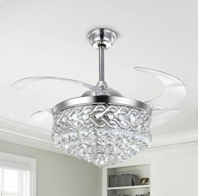 Ventilateur gris simple avec lumière led, 3 couleurs de lumières avec Bluetooth pour musique. Disponible avec télécommande. 72W 185-265V 42 inch