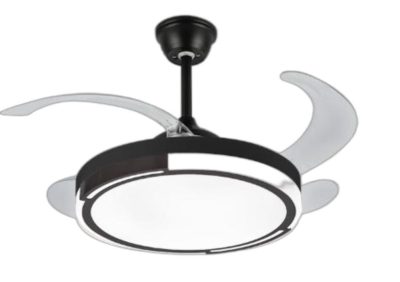 Ventilateur noir cristal avec 3 lumières blanc, jaune, blanc cassé. Bluetooth intégré. Disponible avec télécommande. 96W 185-265V 42 inch
